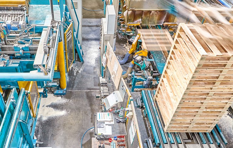 Die modernen, vollautomatisierten Produktionsanlagen lassen sich bei Olbort flexibel umrüsten. So können einerseits hohe Stückzahlen von Standardpaletten produziert werden. Problemlos kann andererseits auch kurzfristig auf kundenspezifische Wünsche und Anforderungen reagiert werden.